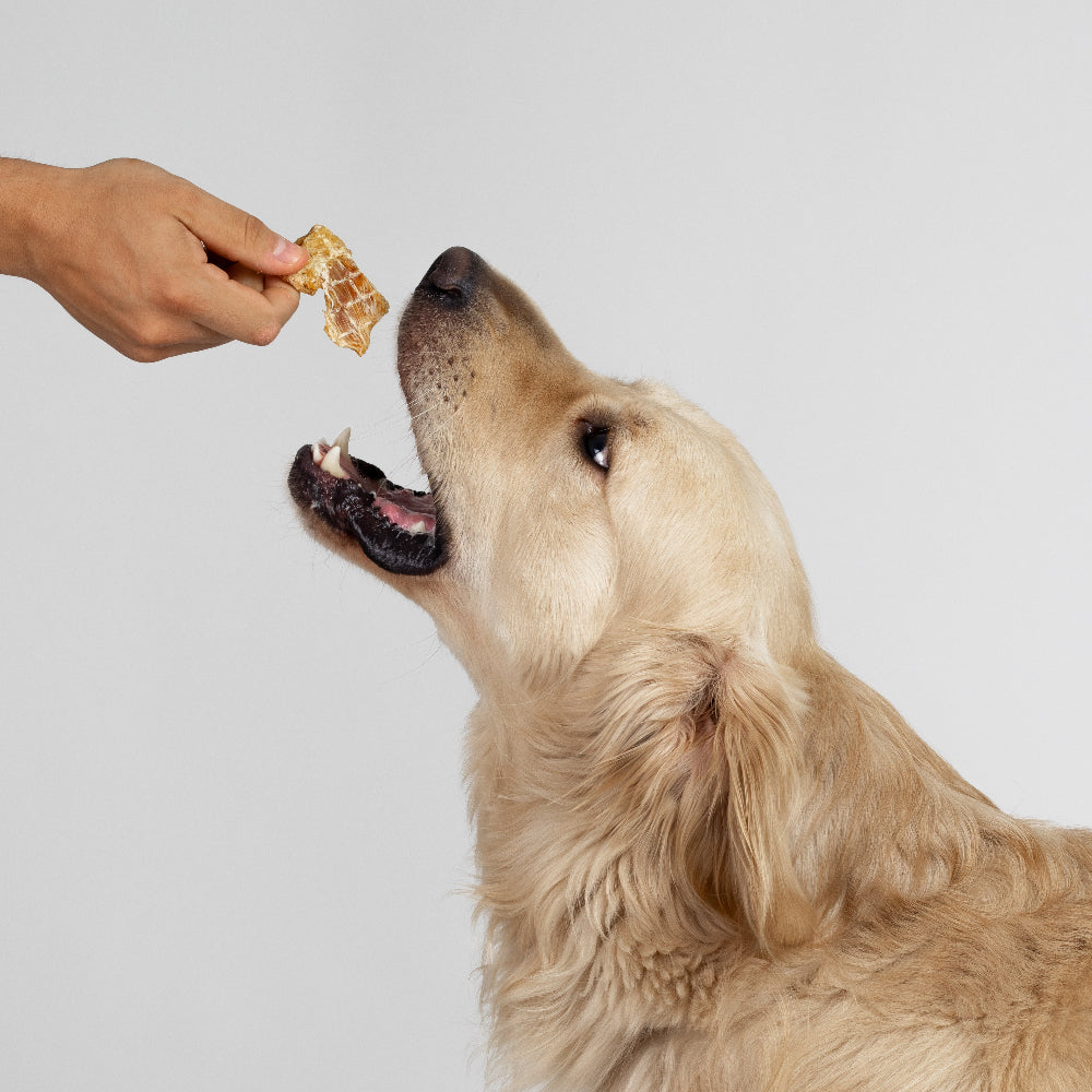 Mi golden de 4 años está encantado con estas chuches. Se come una cada noche después de cenar. Cuando acaba de cenar, se planta delante de la caja y emite un sonidito para que no se nos olvide lo que toca!